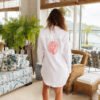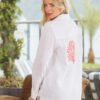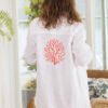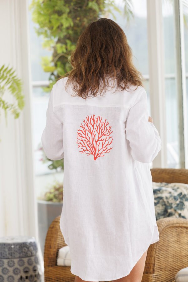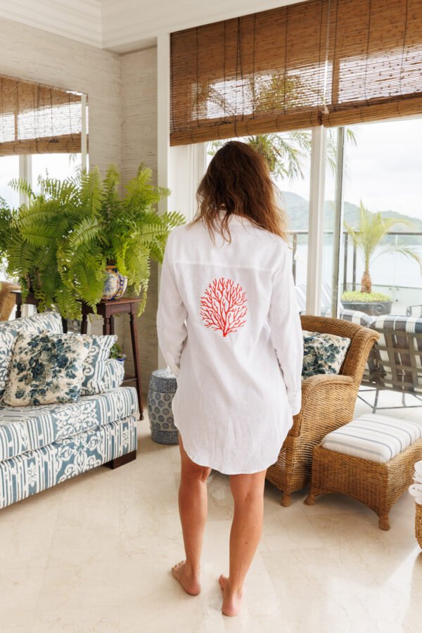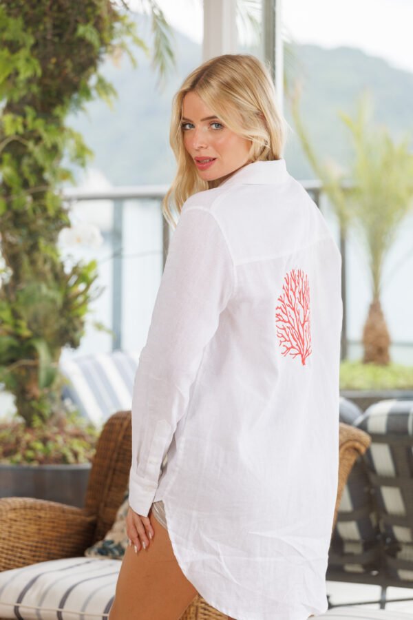 Camisa de linho com bordado de coral nas costas feita 100% com cambraia de linho.
